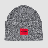 Grey Mens Beanie / Knitted Super Soft Yarn / Uniquely Blended with Wool by HUGO / Trimmed With a Logo Label in Signature Red / Partially Made from Recycled Wool / A Great Mens Accessory for Winter