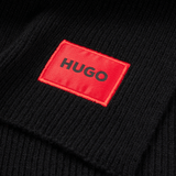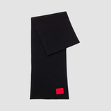 Black Mens Scarf / Knitted Super Soft Yarn / Uniquely Blended with Wool by HUGO / Trimmed With a Logo Label in Signature Red / Partially Made from Recycled Wool / A Great Mens Accessory for Winter