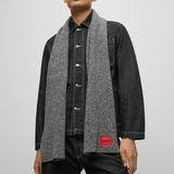 Grey Mens Scarf / Knitted Super Soft Yarn / Uniquely Blended with Wool by HUGO / Trimmed With a Logo Label in Signature Red / Partially Made from Recycled Wool / A Great Mens Accessory for Winter