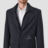 Classic Mens Coat / Winter Weight Wool / Removable Collar / Single Breasted / Four Button Front with Inner Zip Fastening / Buttoned Sleeves / Fully Lined / A Classic Winter Layer / Mens Winter Coat