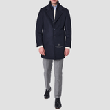 Savile Row Mens Removable Collar Jared Coat in Navy Pure Wool