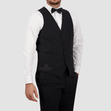 Black Tailored Fit / Four Button Front / Satin Back with Adjustable Tab / Pair with the Jesse or Noah Suit Trouser and the Abram Suit Jacket or Tuxedo Suit Jacket.