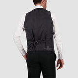 Tailored Fit Black Vest / Checked Print / Four Button Front / Satin Back with Adjustable Tab / Pair with the Jesse Noah Suit Trouser and the Abram Suit Jacket / Super 120s Wool