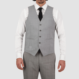 Tailored Fit Light Chrome Grey Mens Vest / Four Button Front / Satin Back with Adjustable Tab / Pair with the Jesse or Noah Suit Trouser and the Abram Suit Jacket / Wool and Polyester Blend