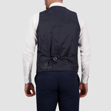 Tailored Fit Navy Vest / Four Button Front / Satin Back with Adjustable Tab / Pair with the Jesse or Noah Suit Trouser and the Abram Suit Jacket / Wool and Polyester Blend