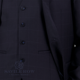 Tailored Fit Navy Vest / Checked Print / Four Button Front / Satin Back with Adjustable Tab / Pair with the Jesse Noah Suit Trouser and the Abram Suit Jacket / Super 120s Wool