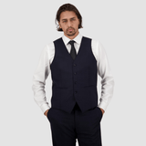 Savile Row Tailored Fit Mens Saul Vest in Navy FW7 Pure Wool