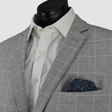 Boulvandre Mens Slim Fit Scuzzatti Checkered Suit in Silver Big Man