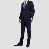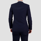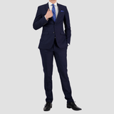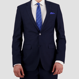 Slim Fit Navy Check Suit / Two Button Front / Single Breasted / Double Vent / Welt Chest Pocket / Straight Flap Side Pockets / 4 Button Sleeve / Great for Business or Events