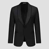 Gibson Slim Fit Black Astley Tuxedo / Soft Shoulder / 70mm Shawl Lapel / Single Satin Button / Satin Jet Pockets / Side Vents / Fully Lined / Satin Trims / The Astley Tuxedo Jacket is Timeless and Stylish / The Refined Satin Shawl Lapel and Jet Pockets Offset the Entire Look / A Standout Tuxedo for Weddings and Formal Events
