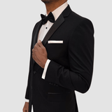 Slim Fitting Mens Evening Suit / Notch Lapel With Satin Detail / Fully Lined / Single Button / Welt Chest Pocket / Side Jet Pockets / Double Vent / Four Satin Buttons on Sleeve / Satin Trimmings / Four Internal Pockets