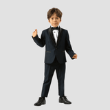 Boulvandre Kids Slim Fit Satin Shawl Lapel Formal Suit in Navy