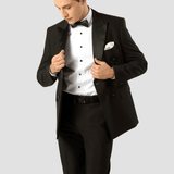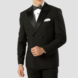 Slim Fit Tuxedo Suit / Satin Peak Lapel / Double Breasted / Satin Buttons / Available in Big Man sizes / Suitable for Formal and Black Tie Events