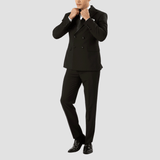Boulvandre Mens Slim Fit Double Breasted Satin Lapel Tuxedo in Black