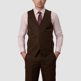 Savile Row Tailored Fit Mens Saul Vest in Brown Linen