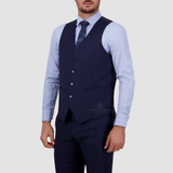 Savile Row Tailored Fit Mens Saul Vest in Navy Blue Pure Wool