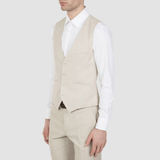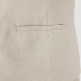 A Premium Blend of Textured Linen and Cotton / Classic Four Button Front / 3 Welt Pockets / Contrast Satin Back / Matching Jacket and Trousers