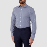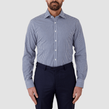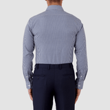A Classic Fit Navy Check Mens Shirt by Cambridge Perfect for Formal Events, Weddings, Evening, Black Tie Occasions and Work / Made from 100% Soft Cotton Twill / Designed in Australia / Semi Spread Collar / Regular Cuff / Back Yoke / 8 Button Front