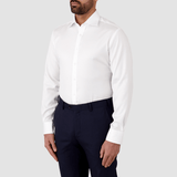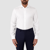 A Classic Fit White Mens Shirt by Cambridge Perfect for Formal Events, Weddings, Evening, Black Tie Occasions and Work / Made from 100% Soft Cotton Twill / Designed in Australia / Semi Spread Collar / Regular Cuff / Back Yoke / 8 Button Front