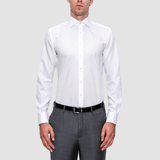A Classic Fit White Mens Shirt by Cambridge Perfect for All Occasions / Sleeve Length: Long Sleeve / Semi-spread collar / Split back yoke / Comfortable men's shirt / Regular Cuff / 8 Button Front / Side Gussets