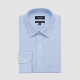 A Classic Fit Mens Shirt by Ganton / Sky Blue Check / Spread Collar / Regular Button Cuff / Chest Pocket / Superfine Easy-Iron Cotton / Perfect for Work, Events and Casual Wear / Effortlessly Complements a Suit, Jeans or Smart Chinos / Versatile And Comfortable Choice For Any Season