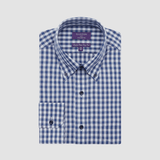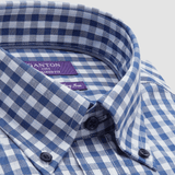 A Tailored Fit Mens Shirt by Ganton / Navy Check / Button Down Collar / Regular Button Cuff / Chest Pocket / Superfine Easy-Iron Cotton / Perfect for Work, Events and Casual Wear / Easily Complements a Suit, Jeans or Smart Chinos / Ensuring Sharpness Without The Effort