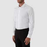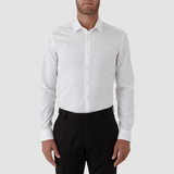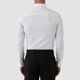 A Mens White Shirt by Gibson Perfect for Formal Events, Weddings, Evening, Black Tie Occasions and WorK / Slim Fit / Regular Cuff / Semi-spread Collar / 8 Button Front / Back Panel Seam / Back Yoke / Concealed Placket / A Classic Slim Fit Long Sleeved Shirt for All Occasions