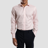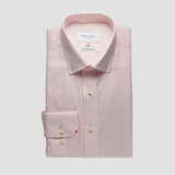 Hardy Amies Classic Fit Shirt / Pink Pure Cotton Fabric / Standard Collar / Single Cuff / A Classic and Versatile Mens Shirt for Business of Casual Occasions / Pink Mini Herringbone Print