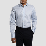Hardy Amies Classic Fit Micro Twill Shirt in Blue Cotton