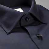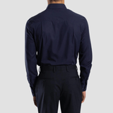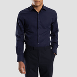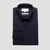 Hardy Amies Slim Fit Shirt / Navy Blue Plain Cotton Fabric / Standard Collar / Single Cuff / A Classic and Versatile Mens Shirt for Business of Casual Occasions