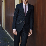 Savile Row Tailored Fit Mens Jed Suit in Navy Pure Tasmanian Wool