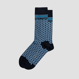 A Versatile Crew Length Mens Sock / Geometric Jacquard Pattern / Jacquard Geometric Print / Logo Banner / Metallic Logo Detail / Cuffed Ankle