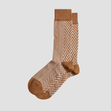 A Versatile Crew Length Mens Sock / Geometric Herringbone Pattern / Metallic Logo Detail / Cuffed Ankle