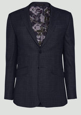 Slim Fit Mens Jacket / Floral Lining / Double Button Front / Notch Lapel / Long Sleeve with Four Button Cuff / Left Chest Pocket with Contrast Pocket Square Lining / Pure Wool Water Repellent / Stain and Spill Resistant / Outstanding Crease Recovery