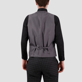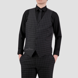 Slim Fit Suit Vest / Charcoal Check Print Design / Four Button Front / Adjustable Back Buckle / Angle Fabric Pockets / Pair with the Jose Suit by Bruton Menswear
