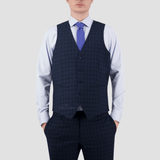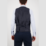 Slim Fit Navy Check Suit Vest / Four Button Front / Adjustable Back Buckle / Angle Fabric Pockets / Pair with the Jose Suit by Bruton Menswear