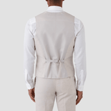 Slim Fit Mens Vest / 4-Button Front / Perfect For Summer Events / Angled Welt Pockets / Jet Hip Pockets / Front Darts / Lined Back with Adjuster / Model Height is 188cm and Wears Size 97