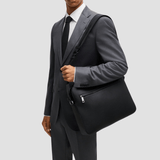 Elegant Document Case Bag by Hugo Boss / One Zip Front Pocket / Two Way Zipper Closure / Two Handles / Removable and Adjustable Shoulder Strap / Exterior BOSS Logo / Crafted in Grained Synthetic Coated Fabric / Signature Trims / Rear Smart Sleeve for Travel / Measurements: 38 x 29 x 7cm