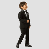 Boulvandre Kids Slim Fit Satin Shawl Lapel Formal Suit in Black