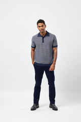 Brooksfield Short Sleeve Knitted Polo in Navy and White