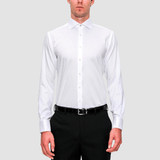 A Modern Fit White Mens French Cuff Shirt by Cambridge Perfect for All Occasions / Sleeve Length: Long Sleeve / Semi-spread collar / Split back yoke / Comfortable men's shirt / FrenchCuff / 8 Button Front / Side Gussets