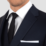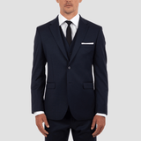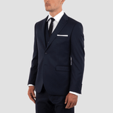Classic Modern Fit Navy Suit / Single Breasted 2 Button Front / Notch Lapel / Straight Flap Pockets / Double Vents / A Comfortable Stretch Fabric