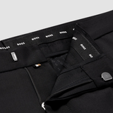 Black Suit Trouser by HUGO BOSS / Classic Fit / Regular Rise / Hook and Zip Closure / Straight Leg / Flat Front / Pockets bottom front: French pocket / Pockets bottom back: Welt Pocket / Partially Lined