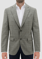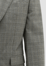 Slim fit / Side vents in the back / Flap pockets / Ticket chest pocket / Peak lapel / Single breasted front with 2 button closure / 4 buttons on sleeves
