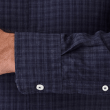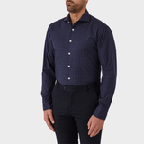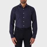 Flinders Mens Tailored Fit Winton Shirt in Navy Check Melange Denim