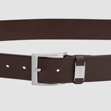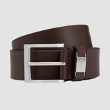 Hugo Boss Connio Mens Leather Belt with Branded Metal Trim in Dark Brown