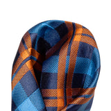 James Adelin Luxury Check Pocket Square in Navy, Blue and Orange
