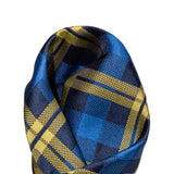 James Adelin Luxury Check Pocket Square in Navy, Royal and Gold