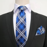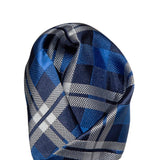 James Adelin Luxury Check Pocket Square in Navy, Royal and Silver