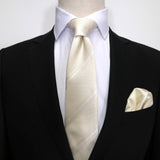 - A ivory and white regimental stripe men's tie in a woven microfibre blend